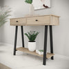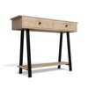 Designed for both aesthetics and practicality, the Hochland Console Table – Brookhil includes two spacious drawers for discreet storage and a lower shelf perfect for displaying décor, plants, books or even a nifty place for your shoes. The melamine surfaces offer a warm, wood-like finish that complements any room style, adding a touch of nature-inspired elegance to your home.